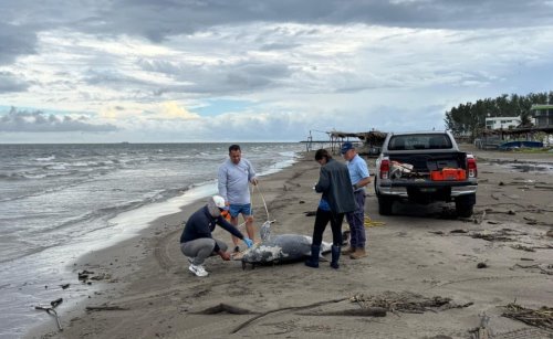 Alvarado, Ver.- La mañana de este martes 7 de octubre pescadores de la localidad de Antón Lizardo dieron aviso a las autoridades pertinentes de la avistamiento de un delfín muerto a orillas de playa.