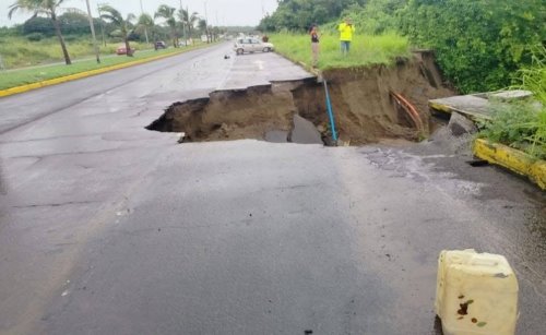 Alvarado, Ver.- Un tramo del boulevar Riviera Veracruzana que conduce del municipio de Boca del Río a la localidad de Antón Lizardo en Alvarado fue cerrado en su totalidad debido a un enorme socavón que se registró tras las intensas lluvias de este martes 7 de octubre.