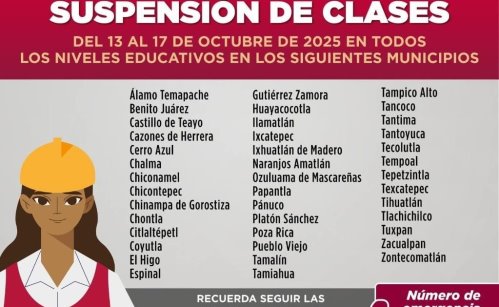 Mantienen Suspensión de Clases en 41 Municipios del Norte de Veracruz por Contingencia